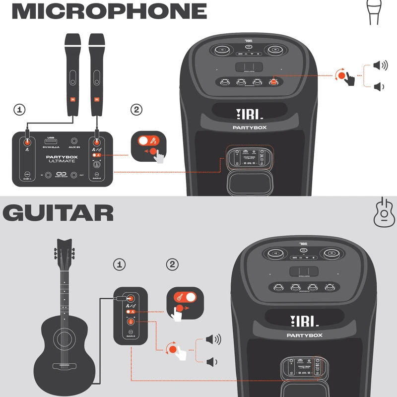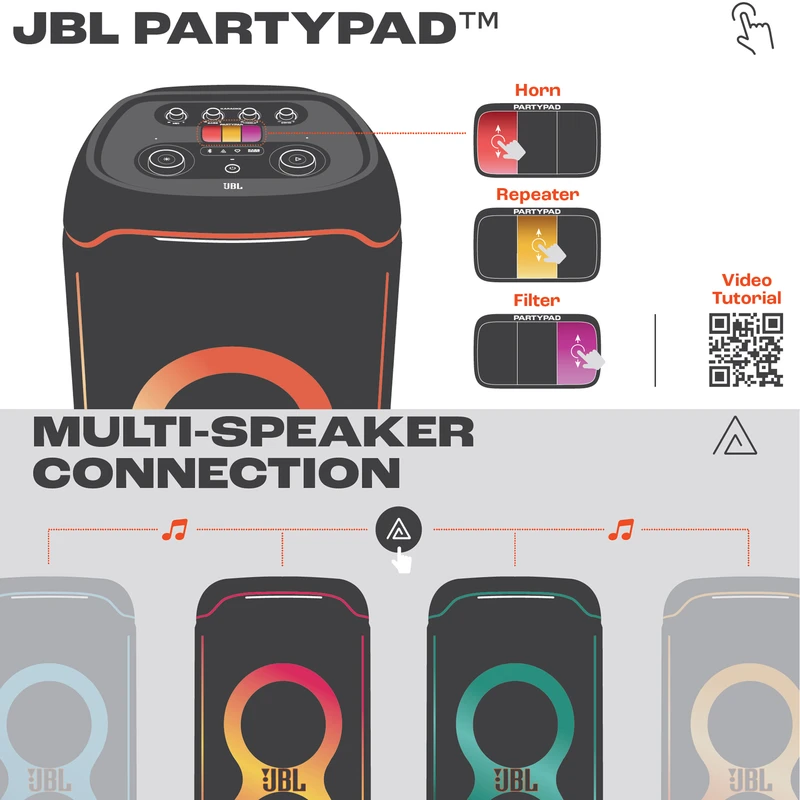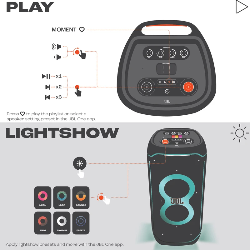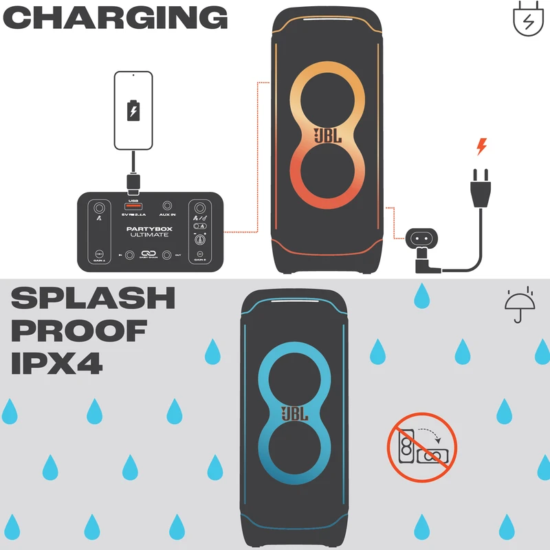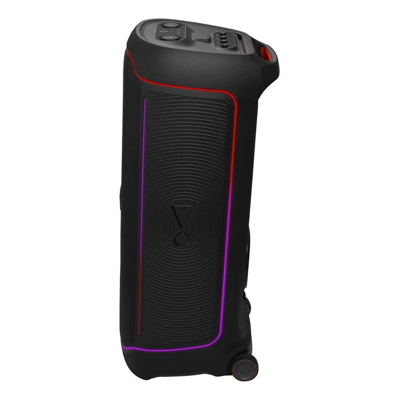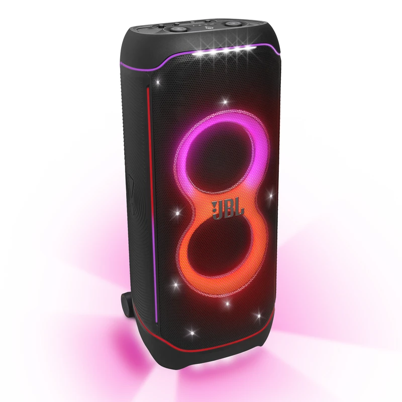 اسپیکر پرتابل و بلوتوثی Ultimate نسل جدید اسپیکرهای سری PartyBox از برند محبوب جی بی ال است. این اسپیکر قابل حمل با درایورهای بهبود یافته و سخت افزار بروز شده، تجربه‌ی صوتی متفاوتی را به شما ارائه می‌دهد. همچنین طراحی ظاهری زیبا و چشمگیر آن همراه با بدنه‌ی ضدآب و مقاوم ، شما را با سطح جدیدی از سیستم‌های صوتی پرتابل آشنا می‌کند. دلیل نامگذاری این اسپیکر ظرفیت بالای صدای تولیدی و آخرین و به روزترین تکنولوژی‌های نوری و سیستماتیک این محصول است همچنین برای اتصال این اسپیکر به دستگاه‌های پخش مانند گوشی موبایل یا پلیر‌ها ، از تکنولوژی بلوتوث استفاده شده است تا بتوانید به راحتی به این اسپیکر متصل شده و به صورت بی سیم موسیقی مورد علاقه خود را بشنوید. جی بی ال در سری جدید اسپیکر Ultimate از بلوتوث نسخه 5.3 که جدید ترین نسخه در حال حاضر است استفاده کرده است و این اسپیکر حرفه‌ای دارای صدای قدرتمند و شفافی است که توسط درایور های جدید و بهبود یافته تولید و پخش می‌شود. 2 عدد ساب ووفر 242میلی متری(9 اینچی) به همراه 2 عدد بلندگوی مید رنج 120میلی متری(4.5 اینچی) و 2 عدد بلندگوی تیوتر 74 میلی متری(2.75اینچی)در کنار هم تجربه‌ی صوتی جدید و بی نظیری را برای شما فراهم می‌کنند. در مجموع این محصول قادر است تا صدایی به قدرت 1100 وات RMS را تولید کرده و به گوش شما برساند. بازه فرکانسی قابل پخش در این سیستم صوتی مابین 30 هرتز تا 20000 هرتز است که برای اسپیکری با این ابعاد فوق العاده است. تنظیمات افکت‌های صوتی و نوری نیز از جدید ترین نوع بوده و رقص نور و نور پردازی با جزعیات دقیق آهنگ پخش شده هماهنگ میگردد. ورودی‌های میکروفن و گیتار هم دارای تنظیمات دقیقی است تا هر آنچه از صوت و تصویر برای برپایی میهمانی‌های خود نیاز دارید در کنار هم جمع باشد.با وجود وزن زیاد این محصول،چرخ های تقویت شده آن نسبت به مدل‌های قبلی کارایی بهتری در جا به جایی آن در اختیار کاربر قرار می دهند.اتصال تمامی محصولات خانواده PartyBox به هم در این محصول دیده می‌شود و می‌تواند تمام کننده ی نیاز صوتی شما باشد.اسپیکر Ultimate برترین محصولی است که واژه‌ی JBL Pro Sound را به تصویر می‌کشد.