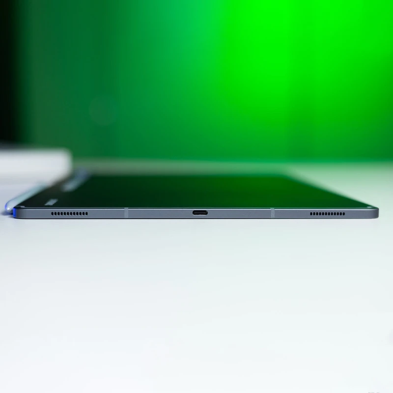 تبلت پرچمدار سامسونگ گلکسی Tab S10 Ultra با ابعاد غول‌پیکر و سخت‌افزار قدرتمندش حتی می‌تواند نقش یک لپ‌تاپ را ایفا کند. بدنه تمام‌فلزی خوش‌ساخت این تبلت با بهره‌مندی از استاندارد IP68 حس پریمیوم و لوکسی را القا می‌کند. وزن ۷۱۸ گرمی این تبلت به‌خودی خود زیاد است؛ اما با در نظر گرفتن کاربری و قابلیت‌های آن، می‌توانید گلکسی Tab S10 Ultra را در کیف و کوله‌های مخصوص برای حمل‌ونقل راحت قرار دهید. این نسخه از تبلت پرچمدار سامسونگ تنها از اتصال Wi-Fi پشتیبانی می‌کند؛ اما می‌توانید نسخه مجهز به 5G آن را هم تهیه کنید. تراشه مدیاتک +Dimensity 9300 به عنوان قلب تپنده تبلت سامسونگ، از پردازنده هشت هسته‌ای با حداکثر فرکانس ۳.۴ گیگاهرتزی قدرت می‌گیرد. پردازنده گرافیکی ۱۲ هسته‌ای آن نیز از فناوری رهگیری پرتو بهره می‌برد. کره‌ای‌ها ۱۲ یا ۱۶ گیگابایت حافظه رم به‌همراه ۲۵۶ یا ۵۱۲ گیگابایت یا یک ترابایت حافظه داخلی را برای این مدل در نظر گرفته‌اند. با ترکیب مشخصات سخت‌افزاری مذکور، عملکردی سریع و قدرتمند را از گلکسی Tab S10 Ultra شاهد هستیم. سامسونگ نمایشگر غول‌پیکر ۱۴.۶ اینچی Dynamic AMOLED 2X با نرخ به‌روزرسانی ۱۲۰ هرتز و رزولوشن ۲۹۶۰ در ۱۸۴۸ پیکسل را در این تبلت تعبیه کرده تا تصاویر با کیفیت فوق‌العاده و با رنگ‌ولعاب جذاب به‌نمایش در بیایند. این تبلت از پورت USB-C 3.2 و کانکتور مغناطیسی برای اتصال لوازم جانبی بهره می‌برد. اندروید ۱۴ پیش‌فرض با وعده هفت سال پشتیبانی اساسی، مجموعه ویژگی‌های هوش مصنوعی Galaxy AI، دوربین دوگانه اصلی و سلفی و بلندگوی استریوی چهارگانه AKG از سایر مشخصات این محصول هستند. سامسونگ با تعبیه باتری ۱۱۲۰۰ میلی‌آمپر ساعتی، امکان شارژدهی ۱۰ ساعته حین وب‌گردی را فراهم کرده است.
