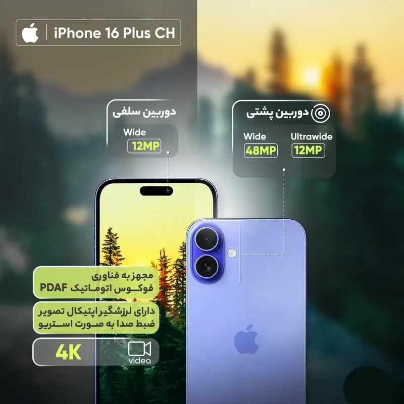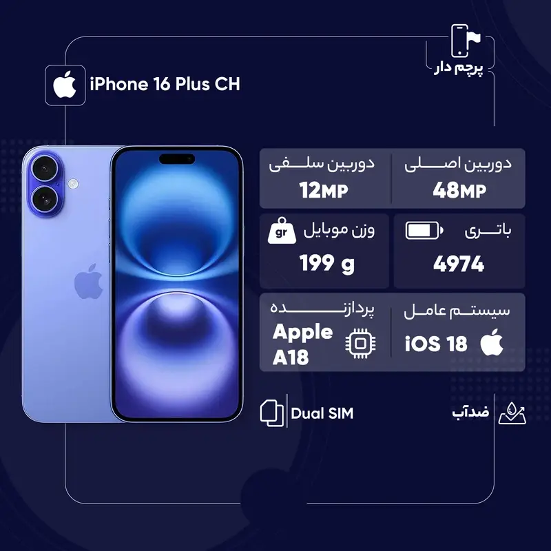 آیفون 16 پلاس انتخابی بینظیر برای کاربرانیست که به دنبال قدرت، زیبایی و لوکس بودن در یک گوشی هوشمند هستند. 16 پلاس را میتوان نسخه اقتصادی آیفون 16 پرومکس و نسخه بزرگتر آیفون 16 معمولی دانست. این گوشی با نمایشگر 6.7 اینچی Super Retina XDR OLED و رزولوشن بالا، تجربه تماشای تصاویر و ویدیوها را به سطحی جدیدی ارتقا میدهد. از طرفی روشنایی 2000 نیتی و پشتیبانی از HDR10 و Dolby Vision، وضوح و دقت رنگ در تصاویر را بالا میبرد. آیفون 16 پلاس به تراشه قدرتمند A18 اپل مجهز شده است که در کنار 8 گیگابایت رم، عملکردی سریع و روان را در تمامی شرایط تضمین میکند. دوربین دوگانه 48 مگاپیکسلی به همراه لرزشگیر اپتیکال تصویر و سنسور فوق عریض 12 مگاپیکسلی، عکاسی و فیلمبرداری با کیفیت بالا را برای شما به ارمغان میآورد. این گوشی نه فقط در سایز بلکه در ظرفیت باتری هم بزرگتر از آیفون 16 معمولی است. باتری 4674 میلیآمپرساعتی و شارژ سریع 50 درصد در 30 دقیقه، نگرانیهای شما را از تمام شدن باتری در روزهای پرمشغلهتان برطرف میکند. علاوه بر این، آیفون 16 پلاس از شارژ بیسیم MagSafe نیز پشتیبانی میکند. اپل در طراحی این گوشی زیبایی و استحکام را با هم ترکیب کرده است و 16 Plus با بهرهمندی از گواهی IP68 یک گوشی کاملا ضد آب محسوب میشود. این گوشی 199 گرم وزن دارد و متناسب با ابعادش، یک گوشی نسبتا سبک محسوب میشود. در مجموع آیفون 16 پلاس یکی از بهترین گزینهها برای طرفدارانیست که به گوشیهای اپل علاقهمند هستند و به صفحه نمایش بزرگ و قیمت مناسب توامان اهمیت میدهند.